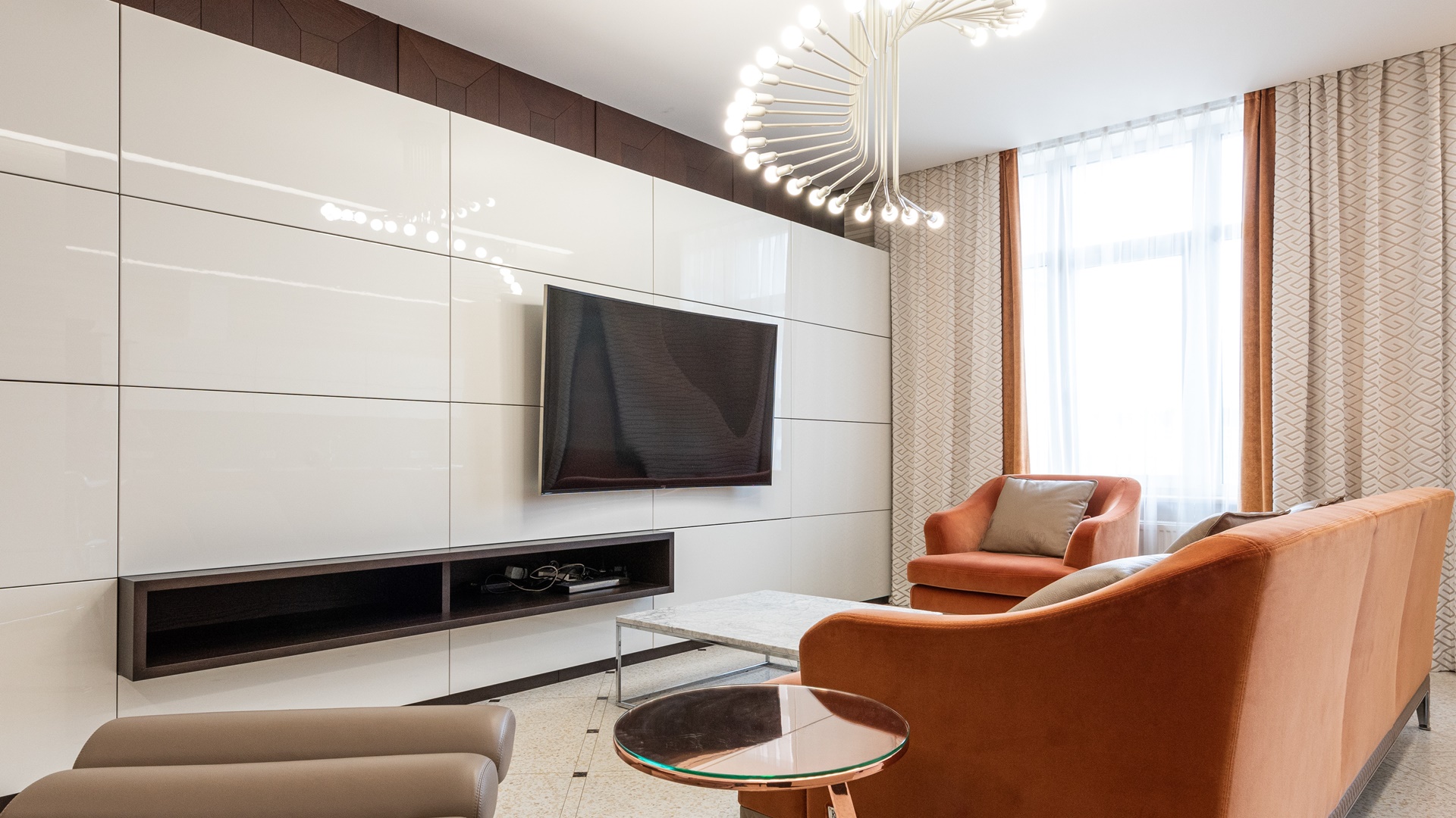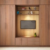 背景牆搭配系統家具,產生不一樣的效果,增添裝修情景